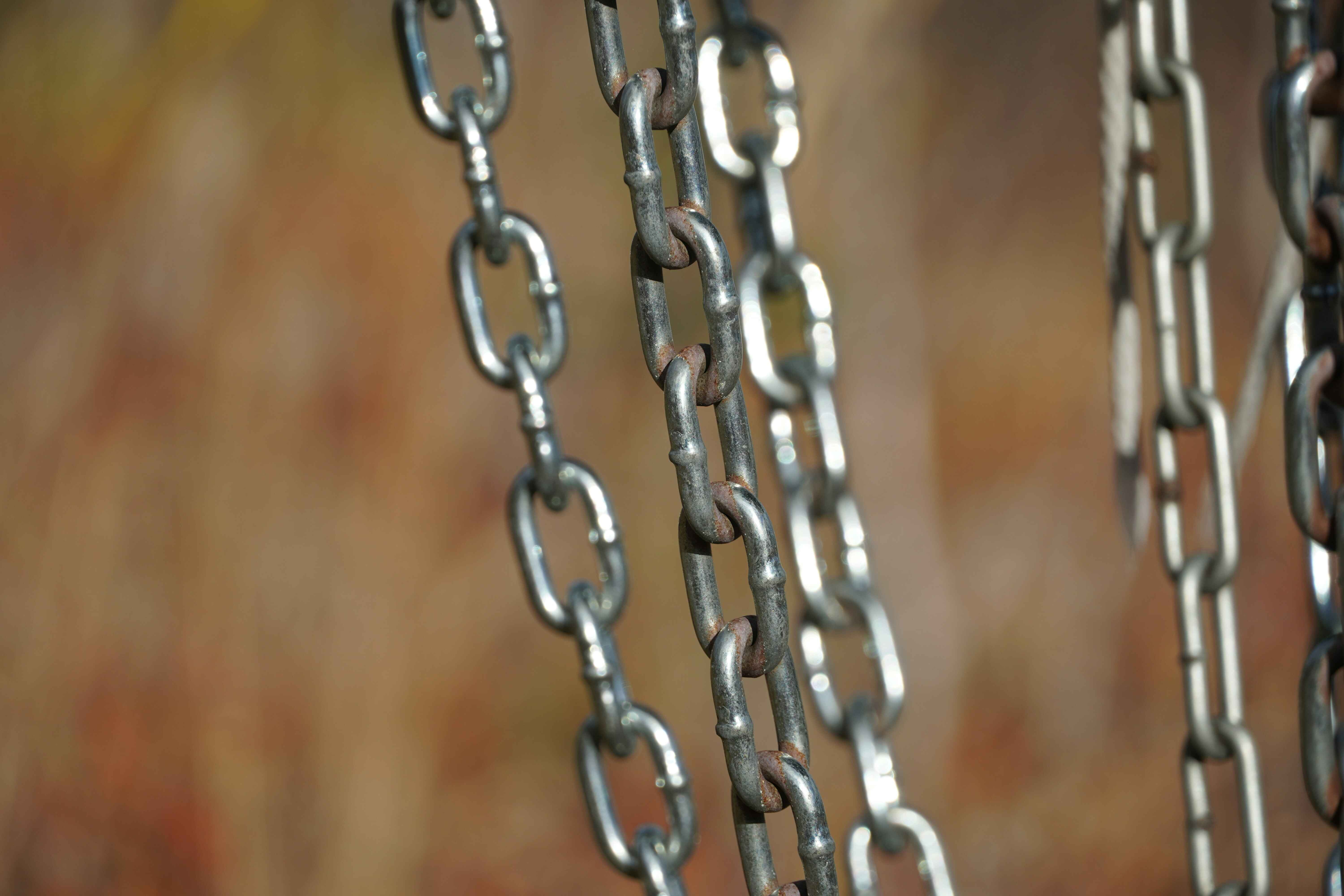 قم بربط أحد طرفي السلسلة بنقطة التثبيت والطرف الآخر بخطاف الفولاذ المزور الخاص بالمادة الرابطة.