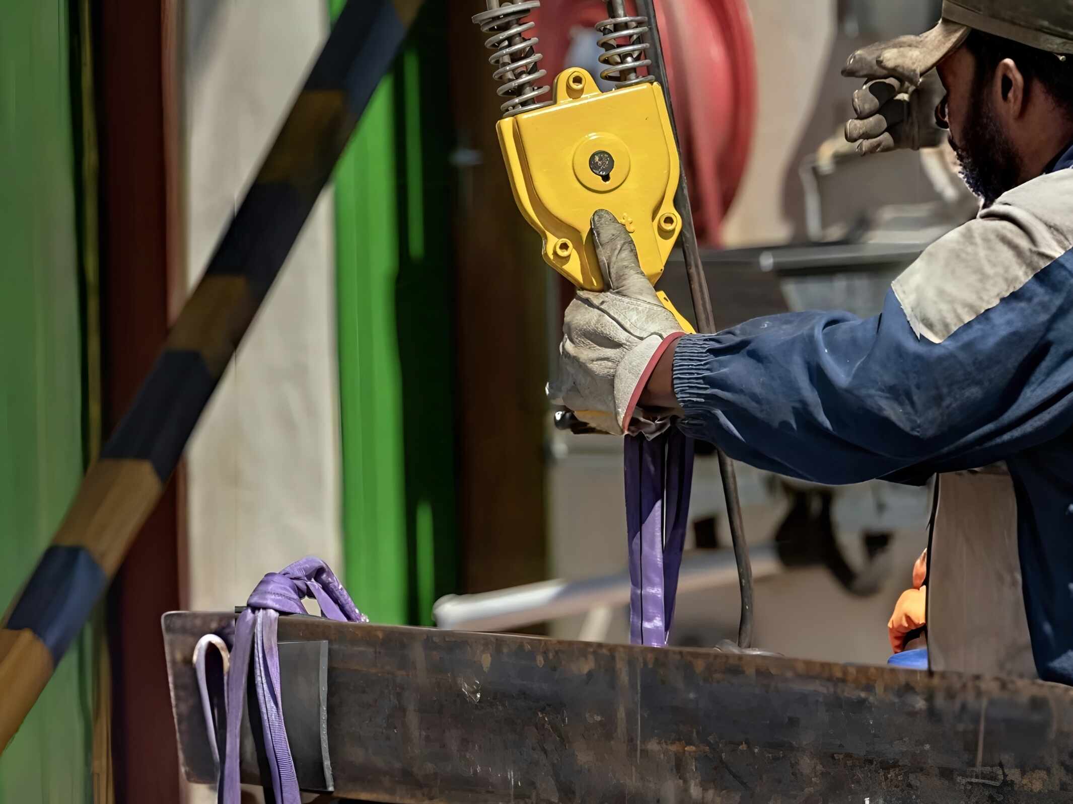 6.تنفيذ عملية الرفع: استخدم مشغلين مدربين وتواصلًا واضحًا. ارفع ببطء لتجنب تحميل الصدمات، والتي يمكن أن تتجاوز WLL الخاص بالحزام. راقب الانزلاق أو عدم المحاذاة أثناء الرفع.